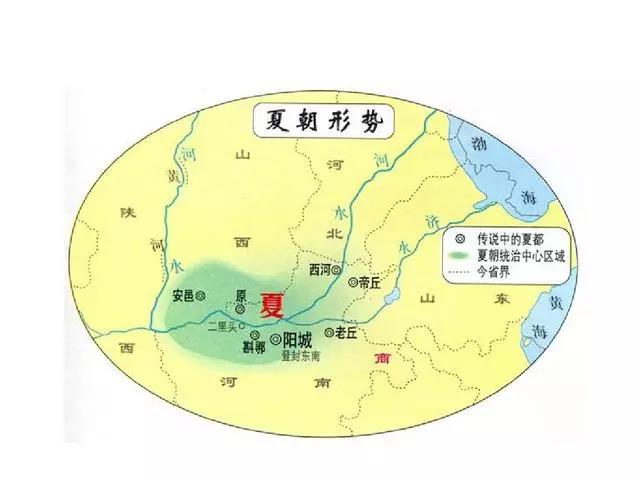 夏朝到底位于哪里,至今尚有很大的争议。不过大多数学者认为:夏朝大概位于以洛阳为中心的伊洛河流域,其主要依据是《国语·周语上》记载:“昔伊洛竭而夏亡”。夏朝的疆域大概其北到达山西省南部,其西到达了黄河、潼关一带,其东到开封一带,其南大概到达伏牛山一带。从夏朝开始,中国对地方的管辖就实行了分封制,夏朝分封的诸侯有有扈氏、有男氏、斟鄩氏、彤城氏、褒氏、费氏、杞氏、缯氏、辛氏、冥氏、斟灌氏等。其越国祖先也是夏朝分封,可能早期分封于今天的淮河上游一带,后来因为周公东征而南迁到了江浙一带。