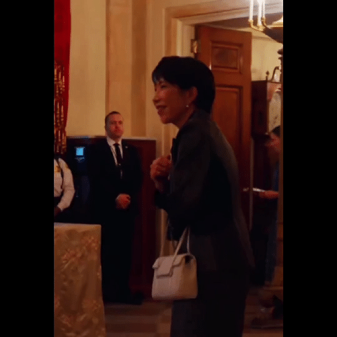 3月19日,白宫国宴厅。日本首相高市早苗结束与特朗普的会谈,步入晚宴现场。当背景音乐响起时,她突然像变了个人——高举右拳,身体随着节奏扭动,脸上绽放出近乎狂喜的笑容。 这张由白宫官方发布的照片,瞬间引爆日本社交媒体。许多日本网友第一反应是:这一定是AI伪造的,为了诋毁我们的领导人。 然而,事实核查无情地击碎了幻想。连AI工具都证实,这张照片千真万确。美方甚至将其描述为“外交场合中自然流露的积极情绪”。 一、从“濒死”到“狂欢” 就在飞往华盛顿的三天前,高市早苗还在日本国会接受质询。议员们连环追问:“是否按美国要求出兵霍尔木兹海峡?”“为何只谴责伊朗,不谴责美以?”