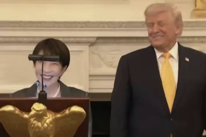 三、三天内的“变脸”绝活 左边画面:白宫晚宴。高市早苗对着特朗普,用结结巴巴的英语献媚,笑容灿烂如花。 右边画面:三天前,国会质询。当被问及为何不谴责美以时,她脸色铁青,怒目而视,只冷冷抛出一句:“因为我要去见特朗普。”随后自以为幽默地耸耸肩:“就这样。”